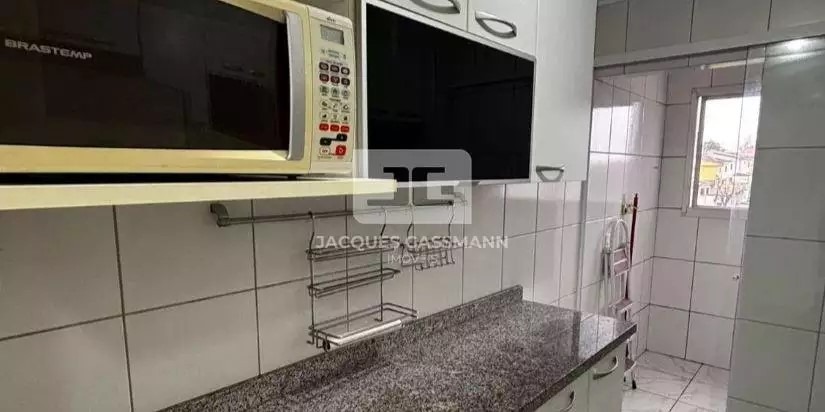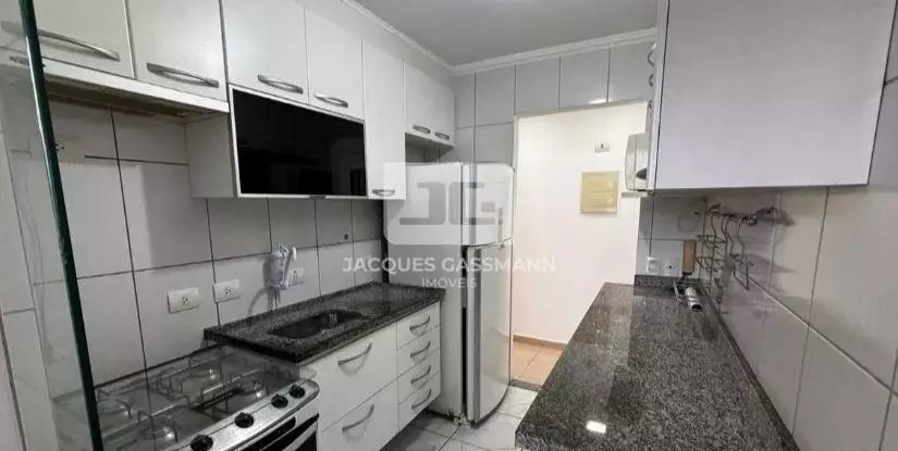 Sala em dois ambientes. Boa iluminação natural, Sacada, Cozinha com armários, geladeira ,fogão micro-ondas Área de serviço.