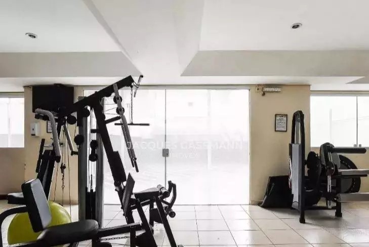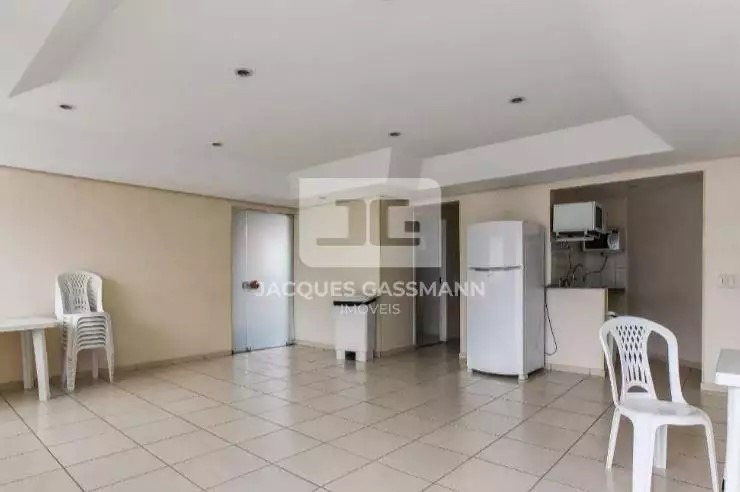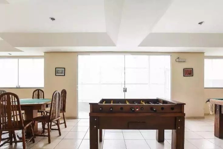 O condomínio oferece segurança com portaria 24 horas e diversas opções de entretenimento como salão de festas e jogos.