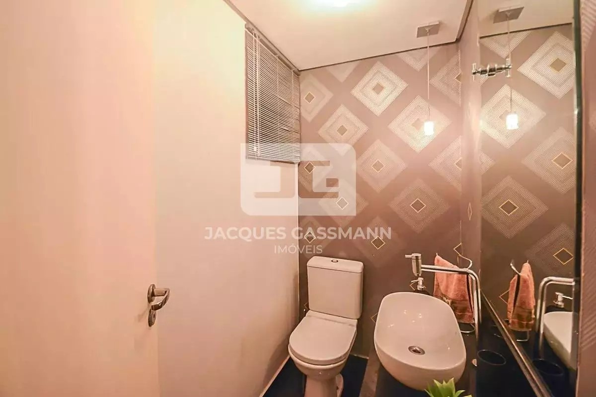 São 04 banheiros totais sendo: suíte, social que atende os quartos, lavabo que atende o living e outro banheiro próximo à lavanderia.