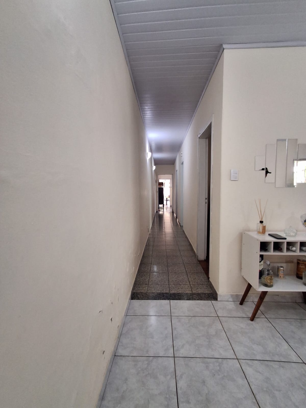 Nos fundos, há uma área de serviço coberta e um quintal com bom espaço para lazer ou futuras ampliações. O imóvel também possui corredor lateral desde a garagem até o quintal, facilitando a circulação e acesso independente.