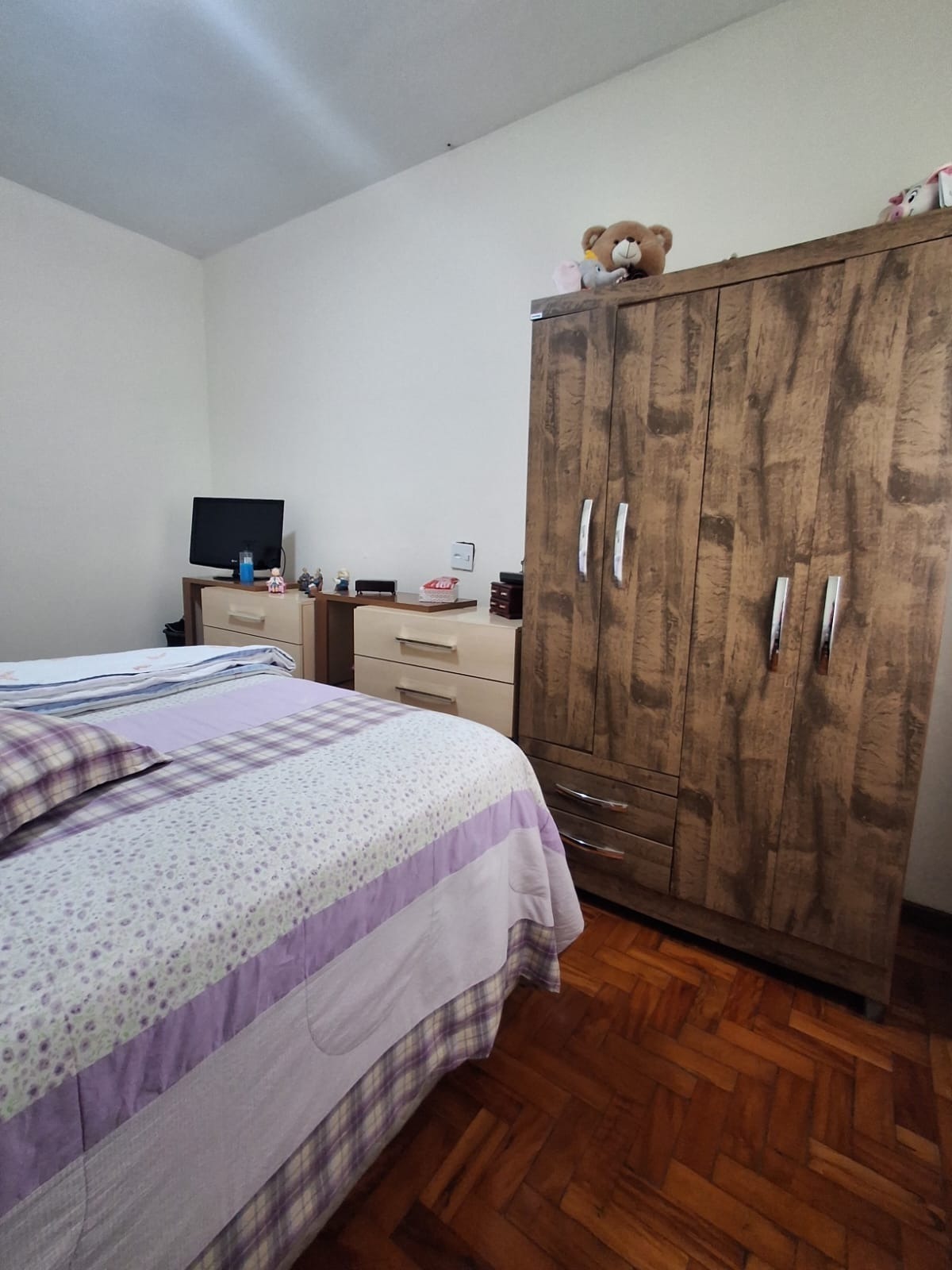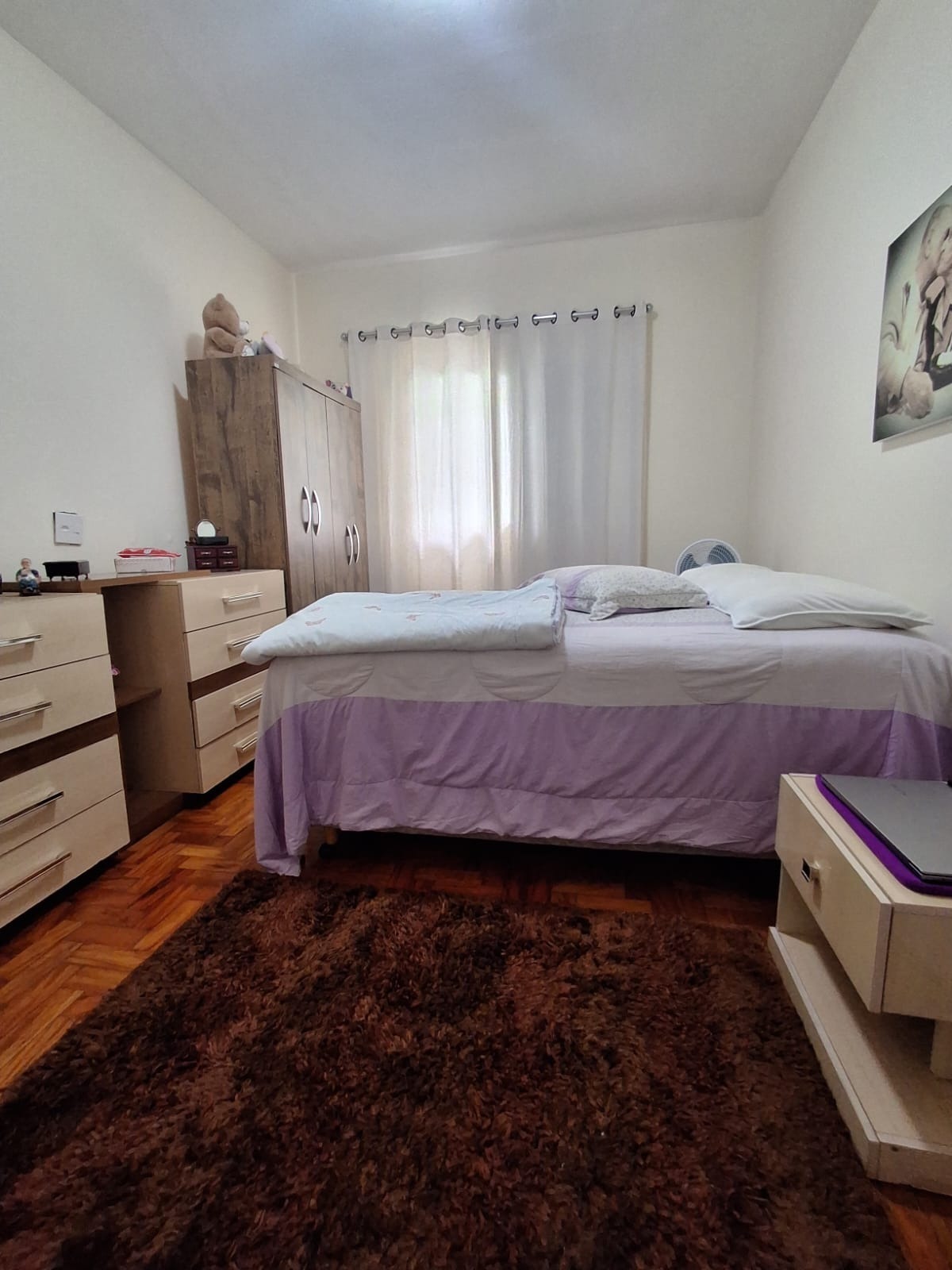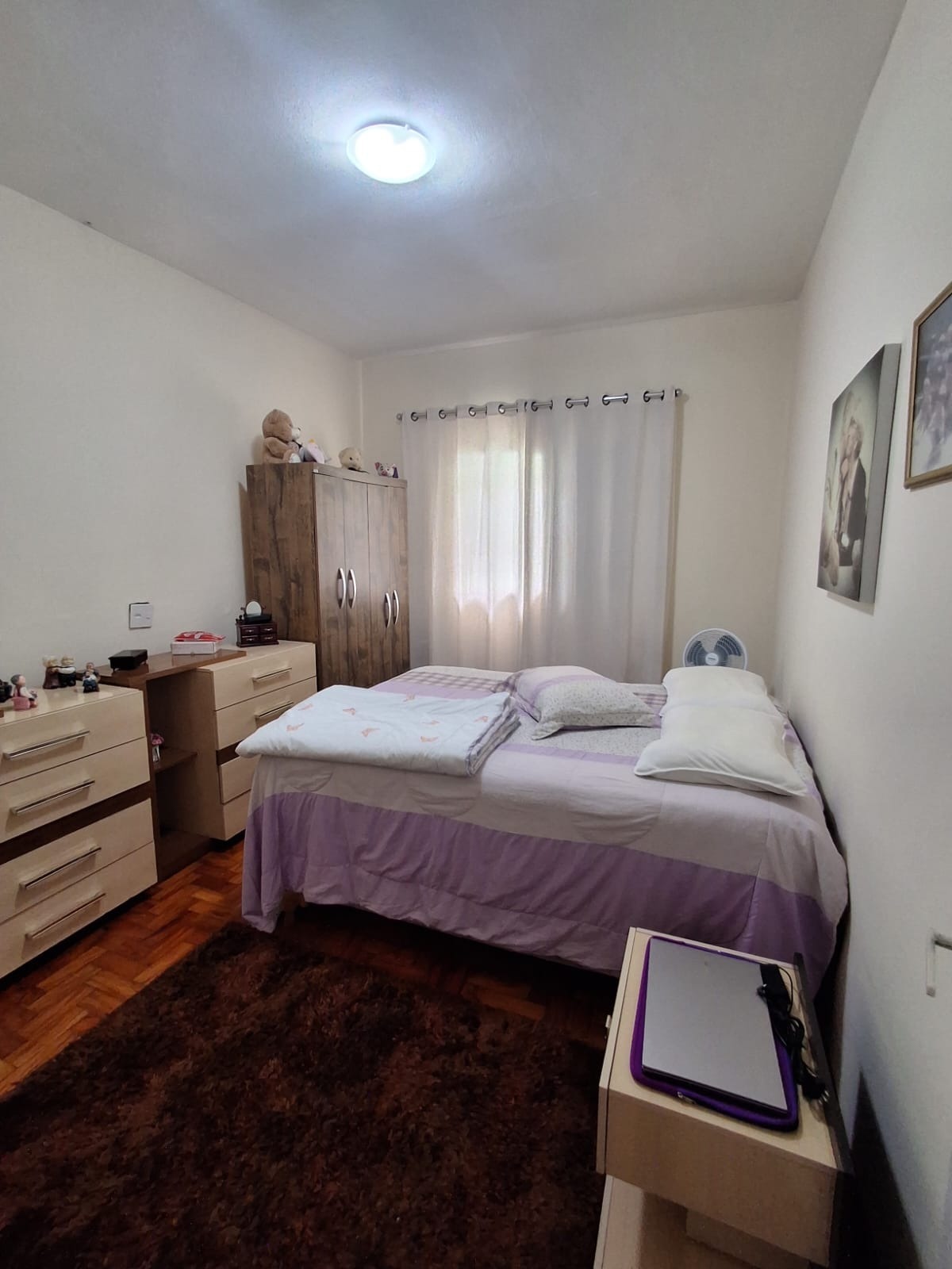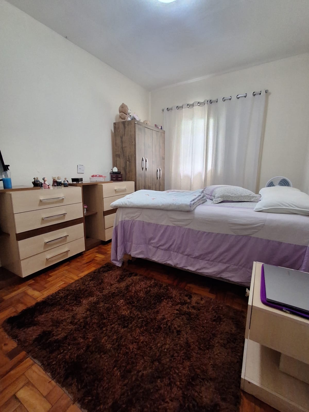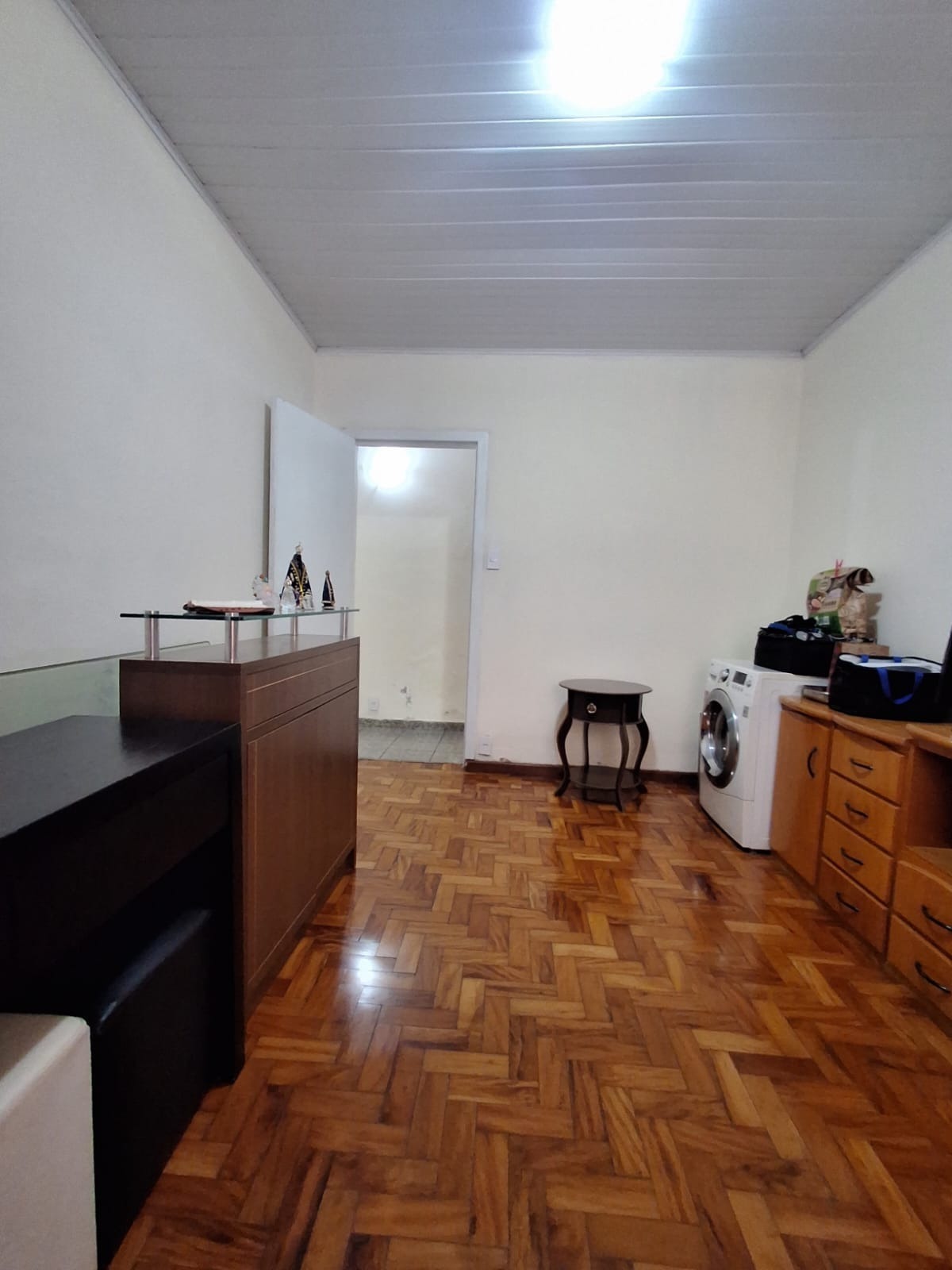A casa conta com uma sala espaçosa com piso cerâmico, ideal para compor diferentes ambientes. São 3 dormitórios com piso em taco de madeira bem conservado, trazendo charme e aconchego.