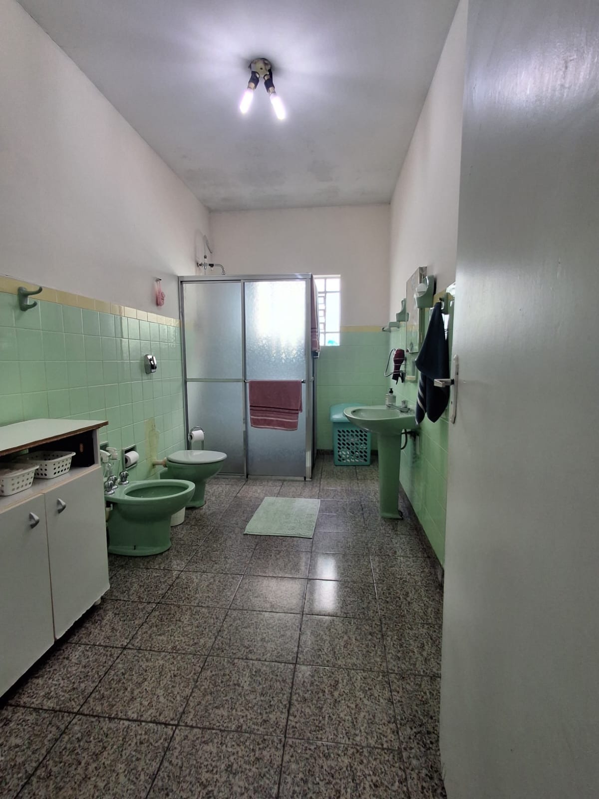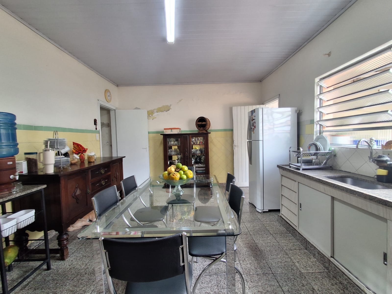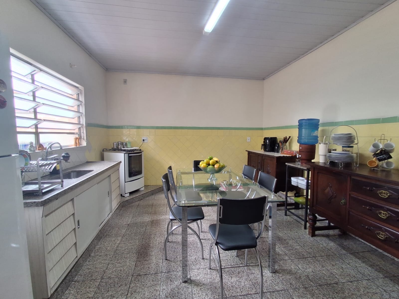 O banheiro é amplo, com ótimo espaço para modernização conforme seu gosto. A cozinha é grande, bem arejada e possui uma ampla janela com vista para o quintal, garantindo boa iluminação e ventilação.