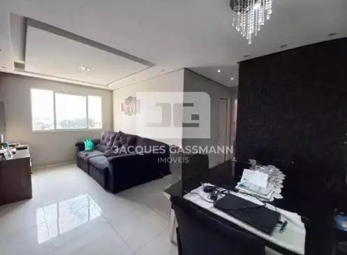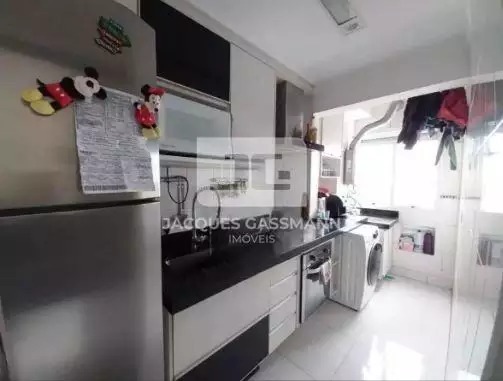 Apartamento contendo 2 quartos, 1 banheiro, sala com 2 ambientes, cozinha planejada, área de serviço e 1 vaga de garagem, todos os ambientes planejados.