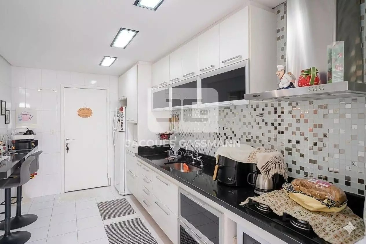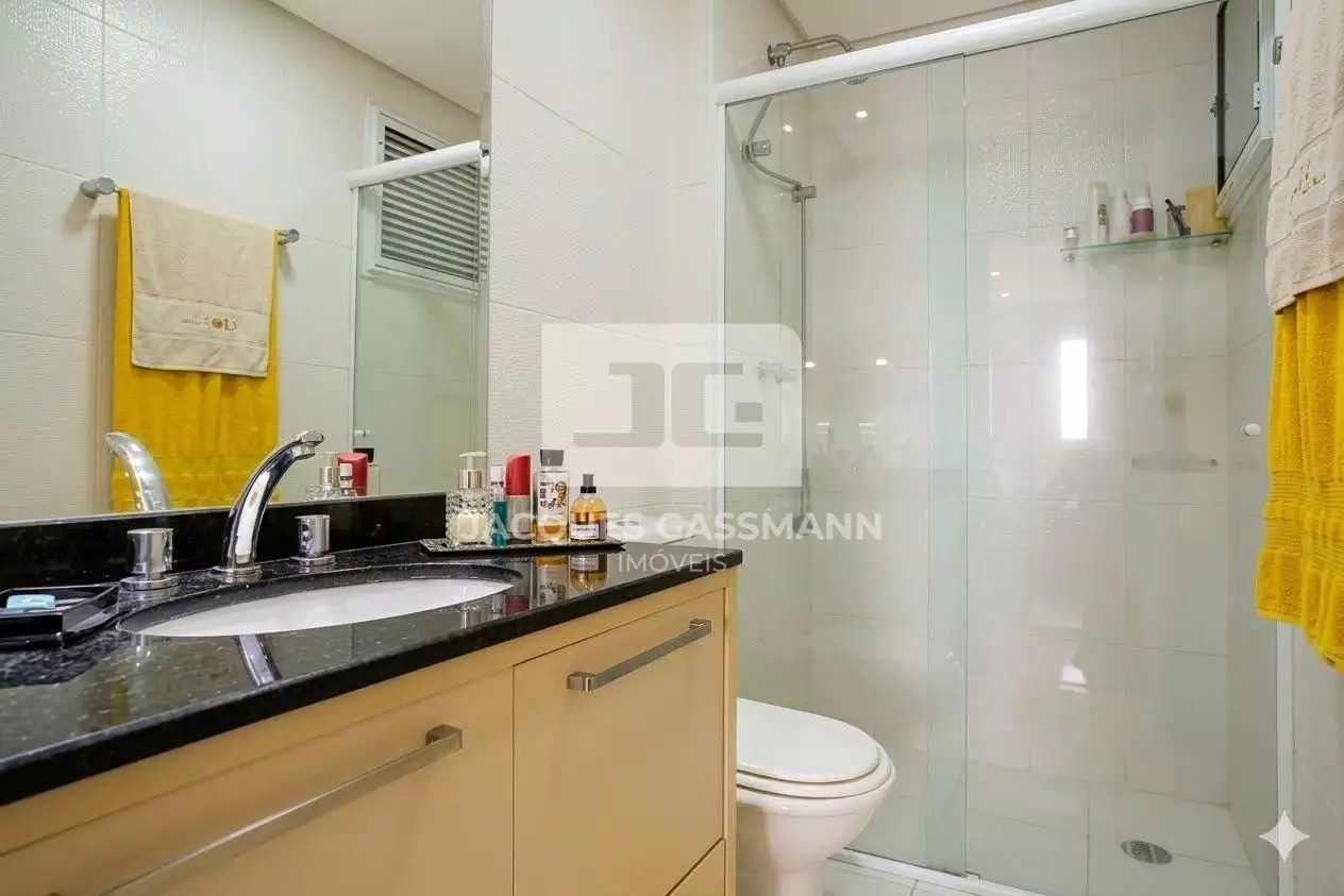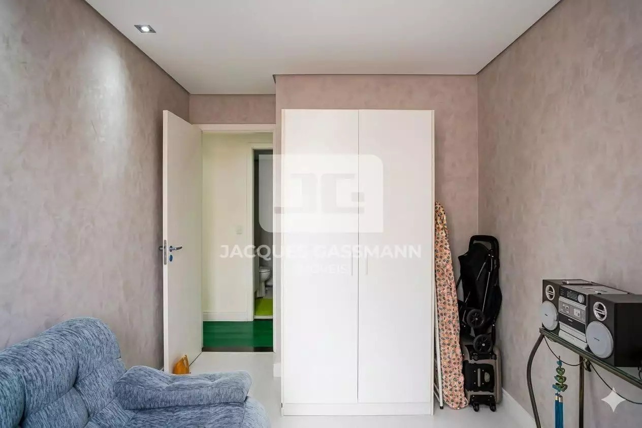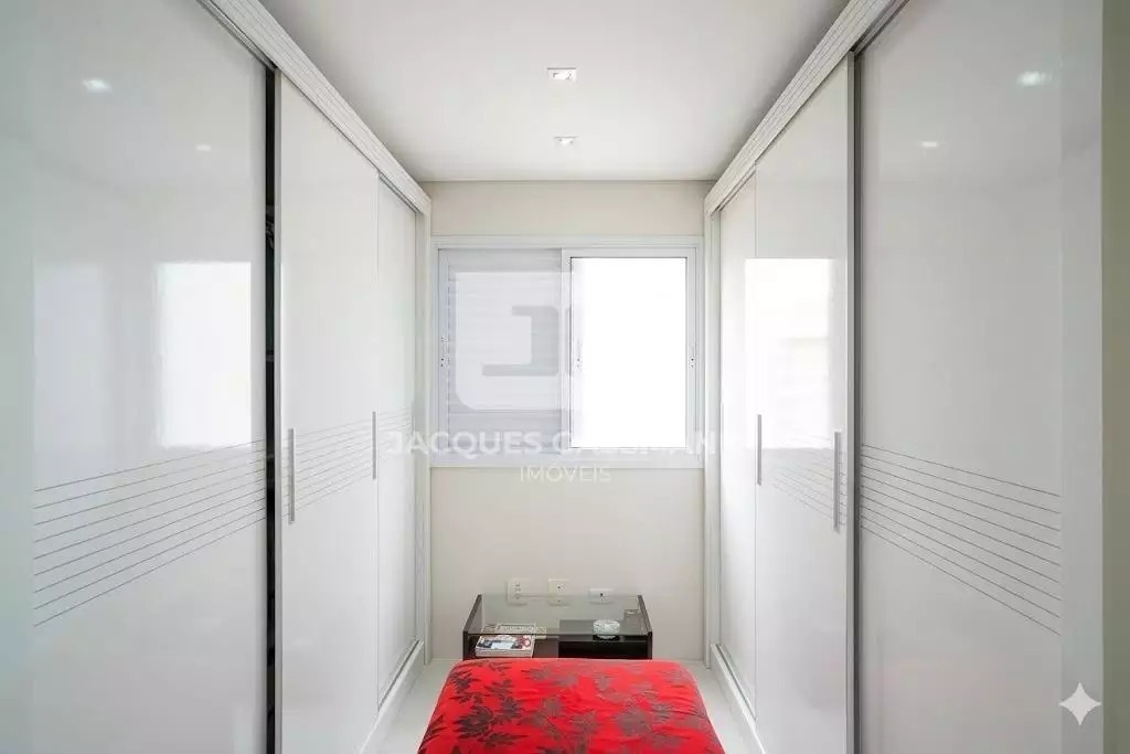 Total de 2 vagas de garagem, elevadores 2 e portaria 24h. O acabamento é em porcelanato, com armários embutidos na cozinha, quartos e banheiro, além de box e closet.
