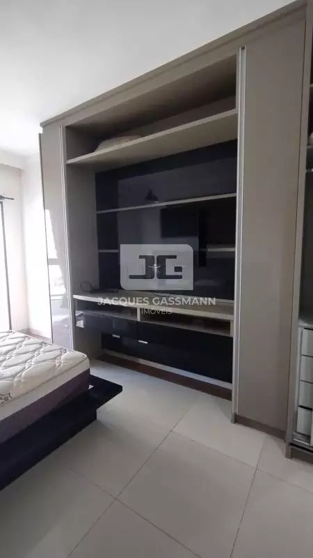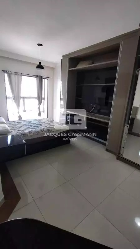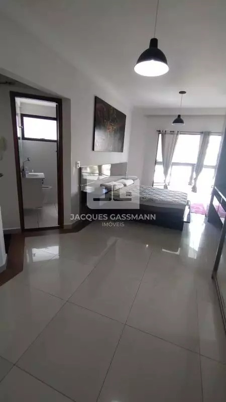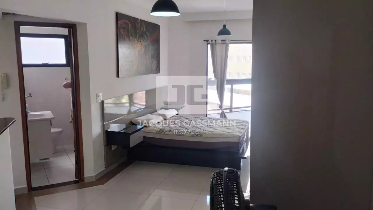 Com (57,382m² de área total), o imóvel apresenta um layout moderno e funcional, integrando sala e dormitório em um ambiente bem distribuído e aconchegante. A unidade está posicionada de frente para a rua, proporcionando ótima iluminação natural e uma agradável vista do entorno.