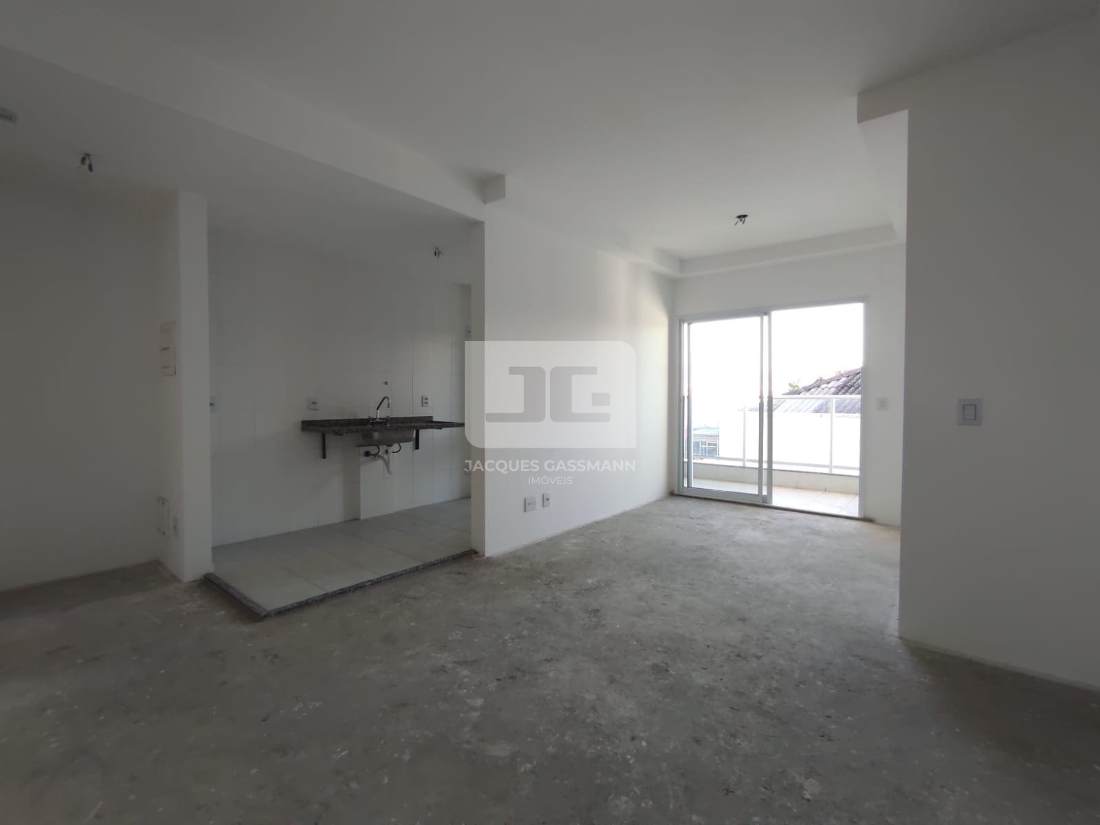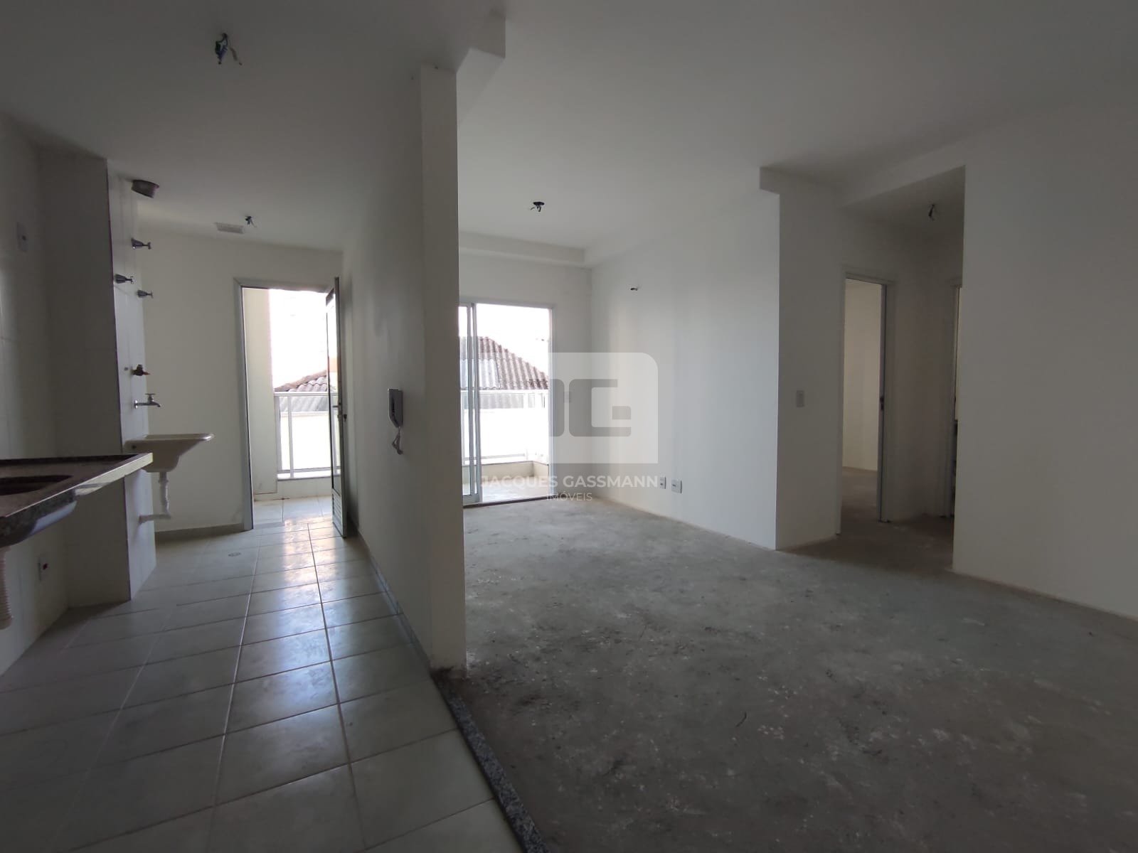 Apartamento novo com 2 dormitórios, cozinha, sala, banheiro e sacada, tudo muito bem distribuídos.