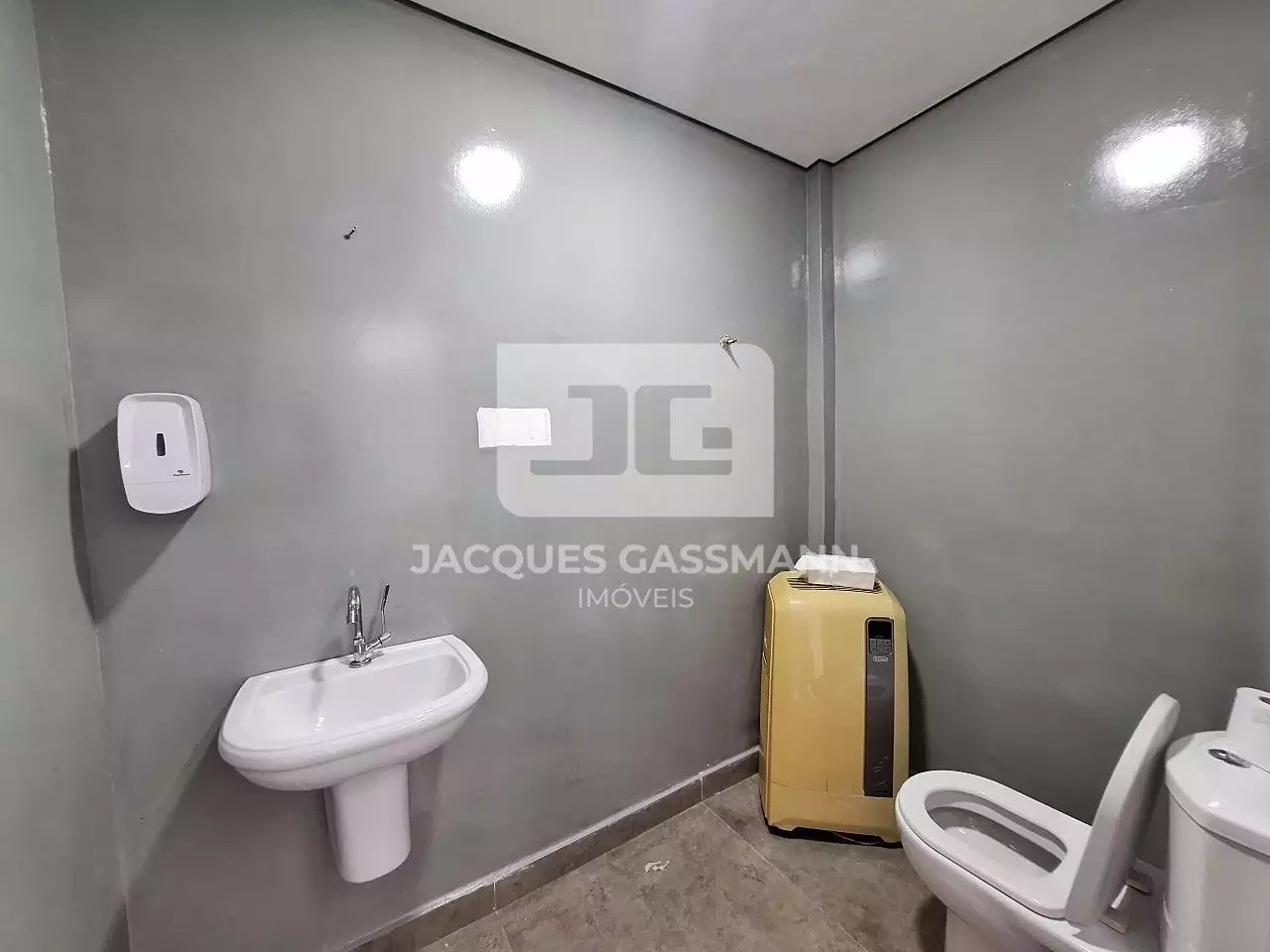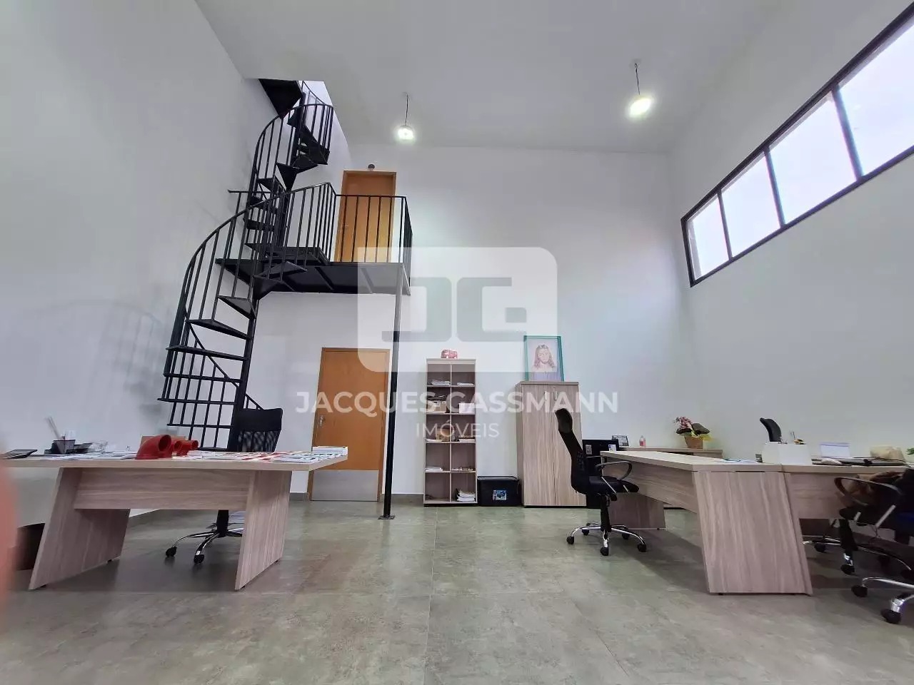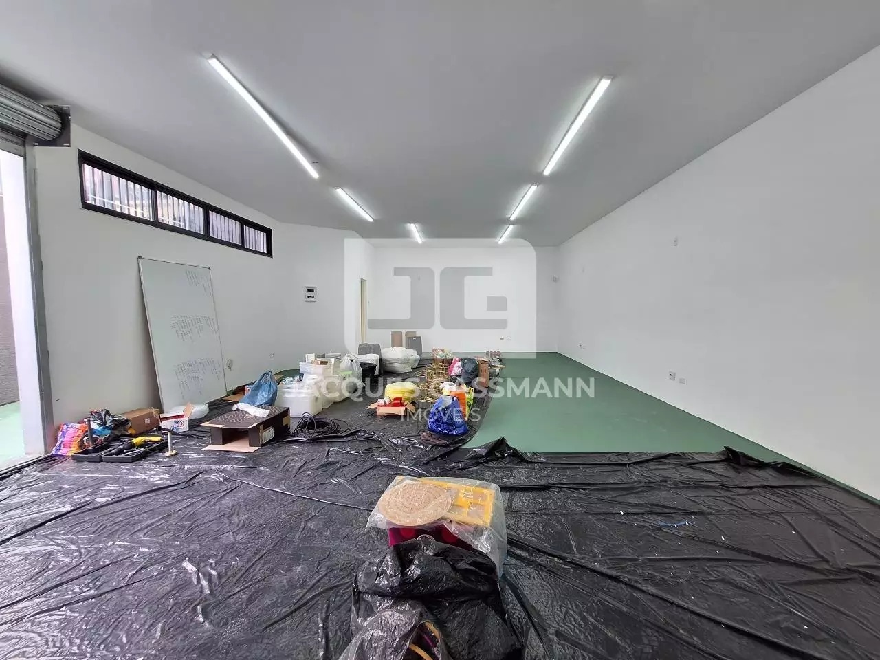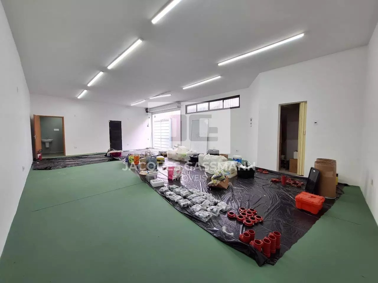 o acesso limitado e restrito, além de uma porta de entrada lateral. Possui pé direito de 6 metros de altura, podendo ser feito um mezanino. Possui