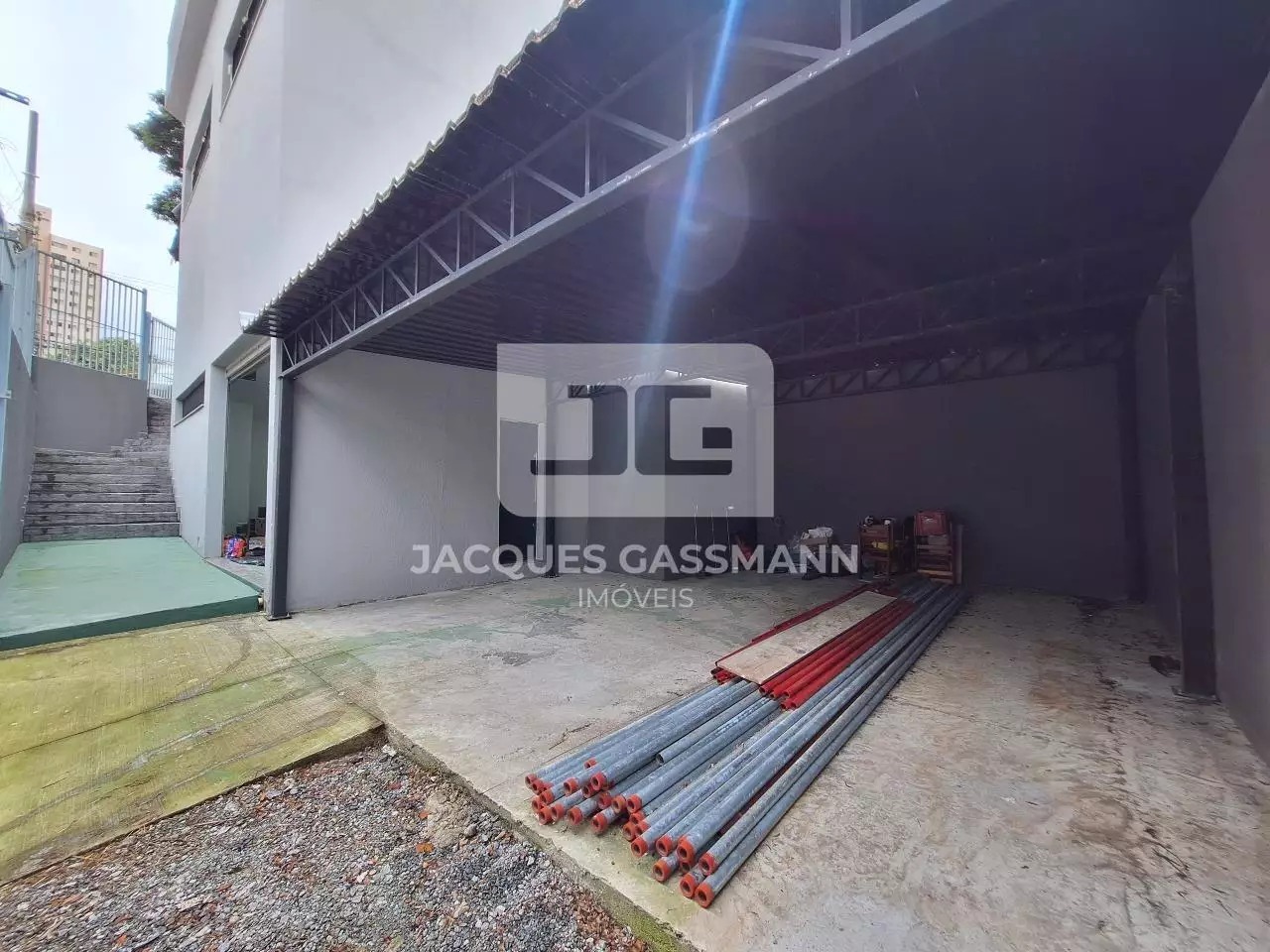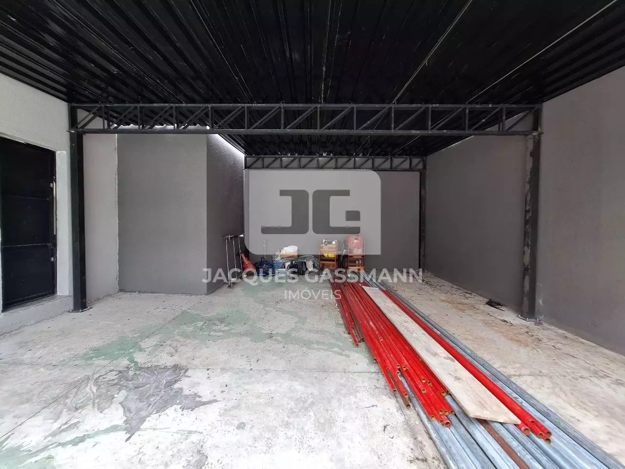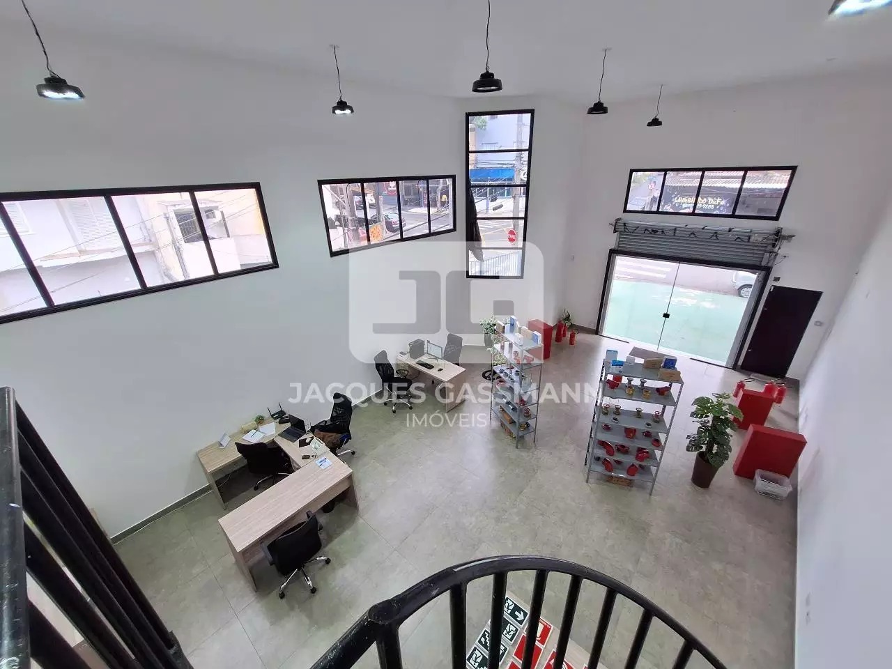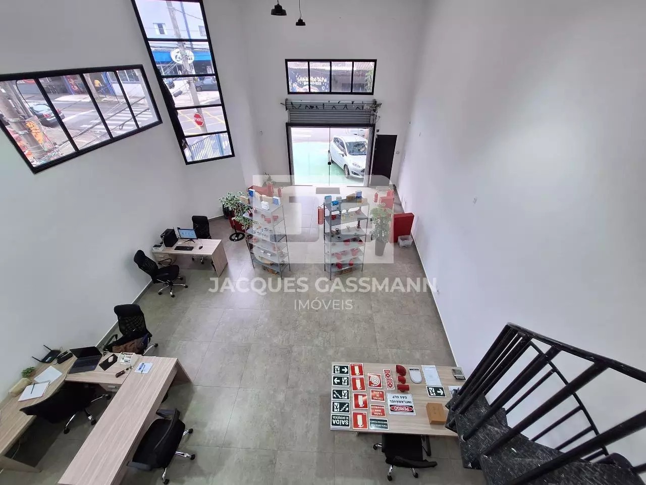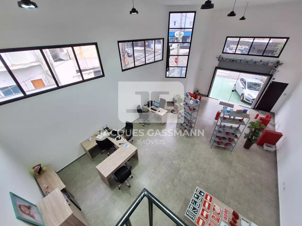 No andar de baixo, com acesso pela Rua Manoel Joaquim Pinto, temos um amplo salão com porta de aço com abertura automática através de