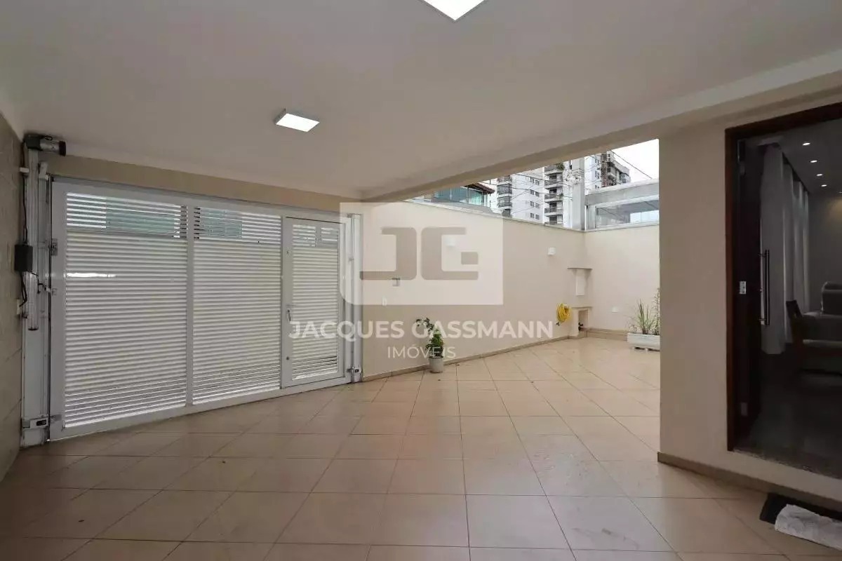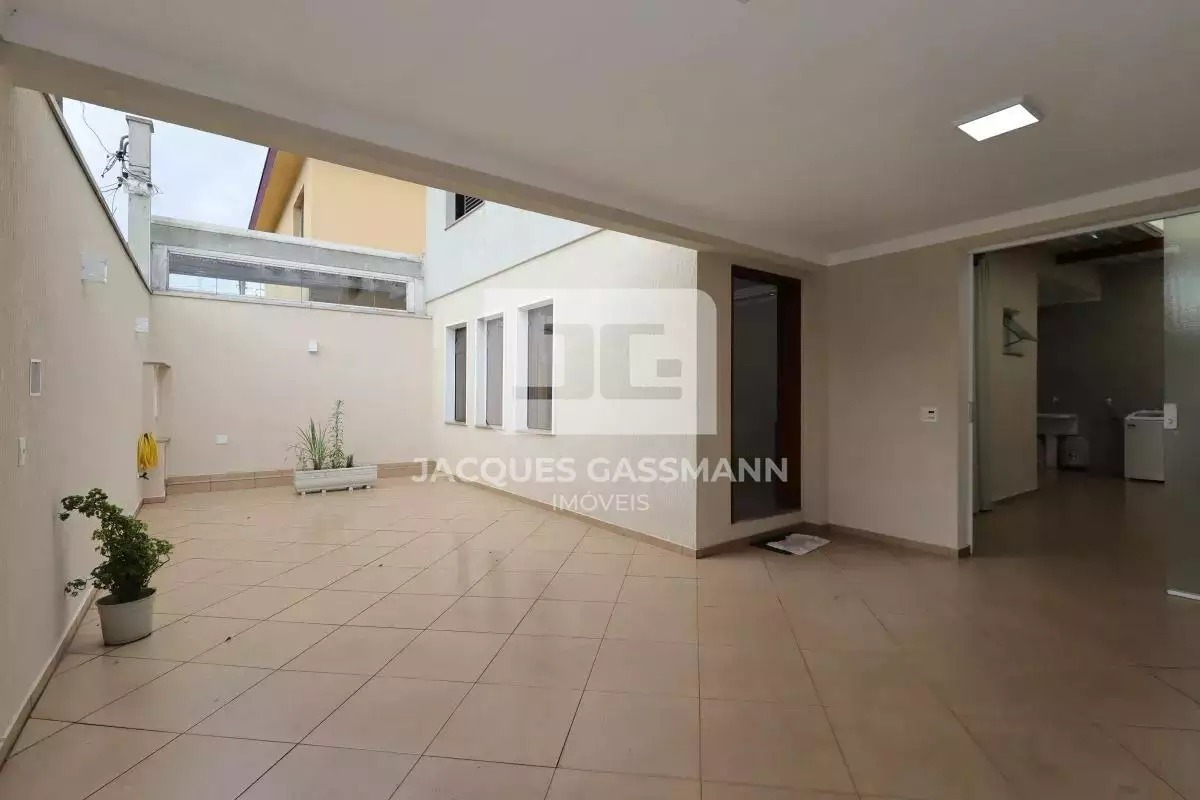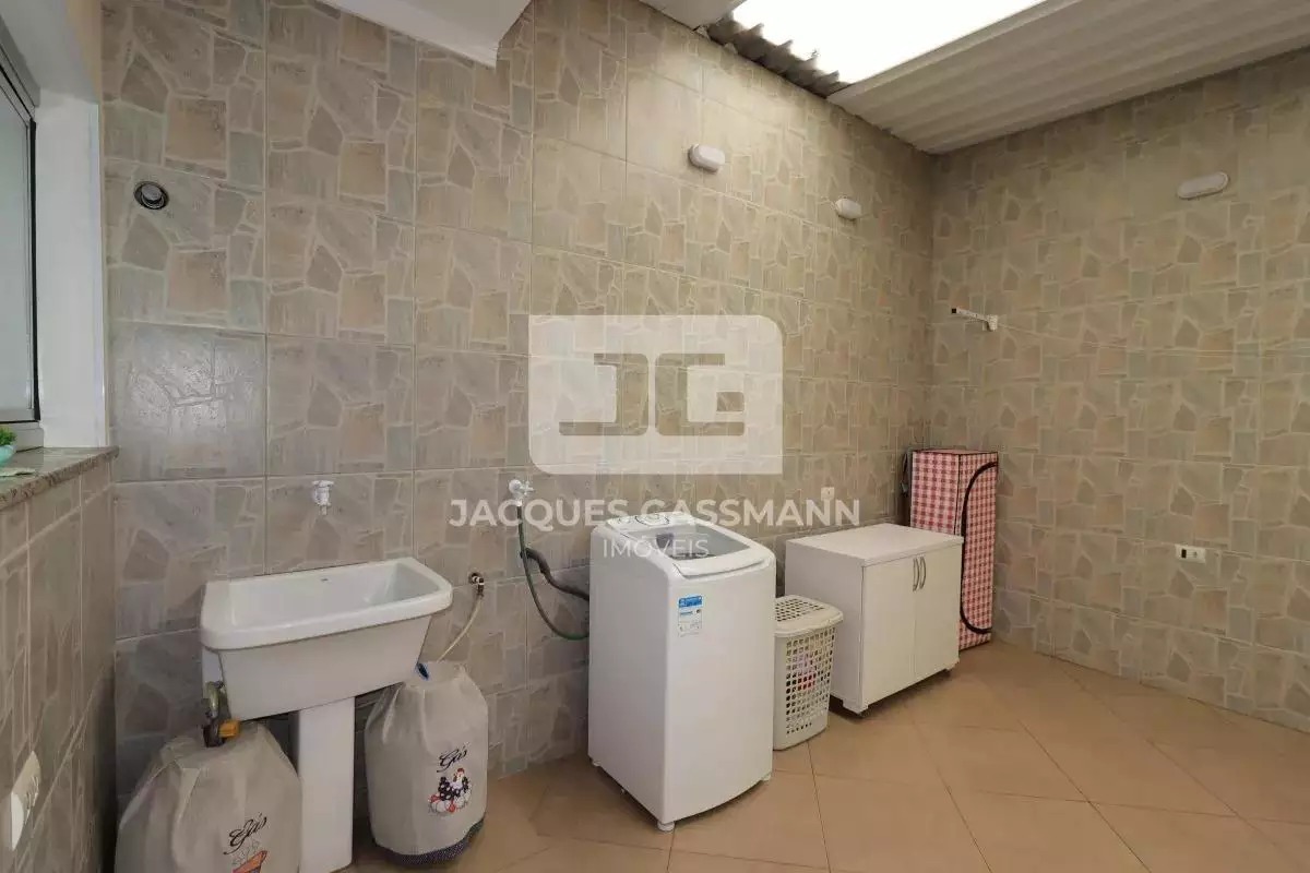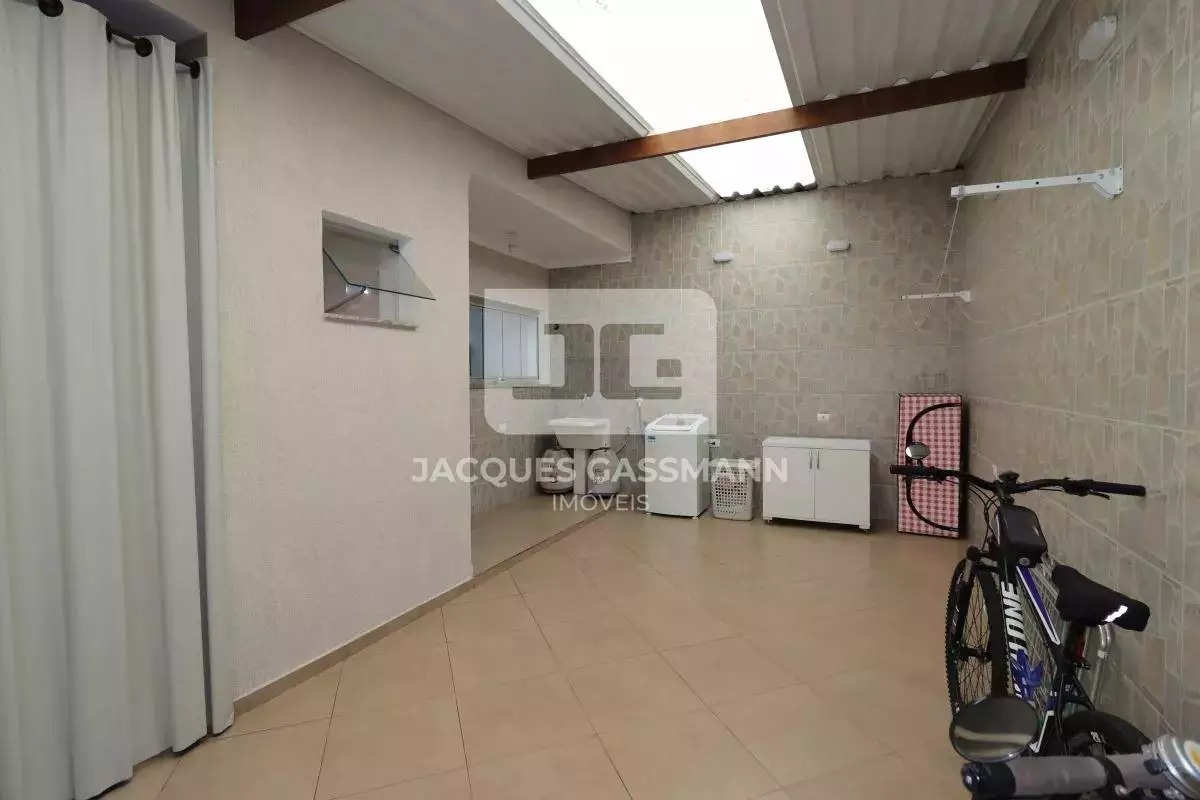 A garagem dispõe de portão automático e passagem de acesso lateral para a lavanderia.